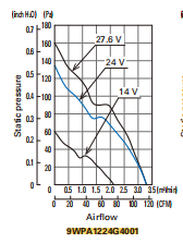 山洋直流防水風(fēng)扇 9WPA1224G4001 產(chǎn)品P&Q曲線、產(chǎn)品尺寸圖: